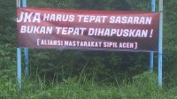 TheTapaktuanPost | Tapaktuan. Sejumlah spanduk berisi kritikan terhadap Pemerintah Aceh terkait amburadulnya pengelolaan dana Jaminan Kesehatan Aceh (JKA) terlihat bertebaran selengkapnya..