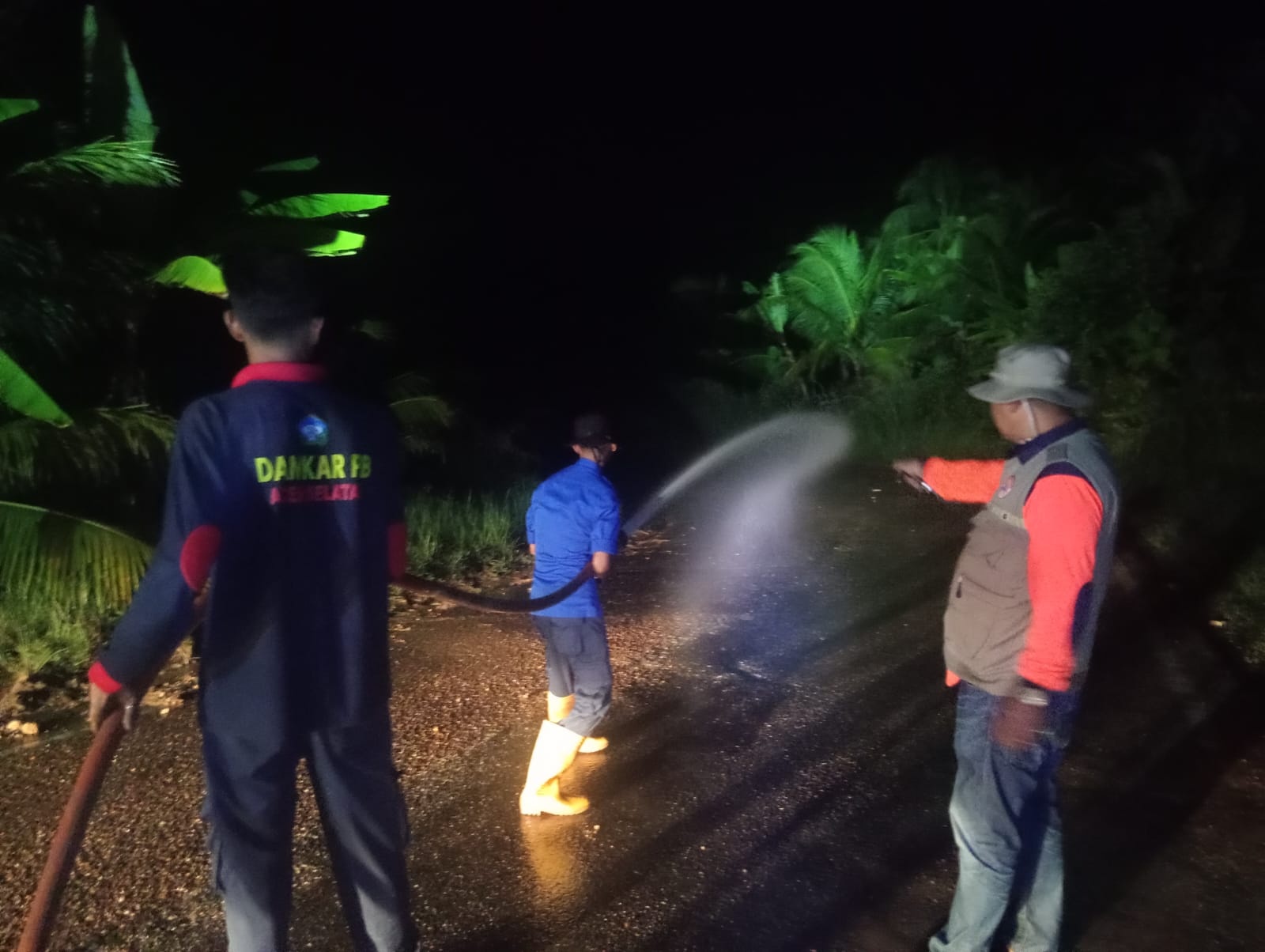 Pembersihan dilakukan menggunakan suplai air bertekanan tinggi dari armada pemadam kebakaran, guna memastikan jalan benar-benar bersih dan aman dilalui kendaraan.