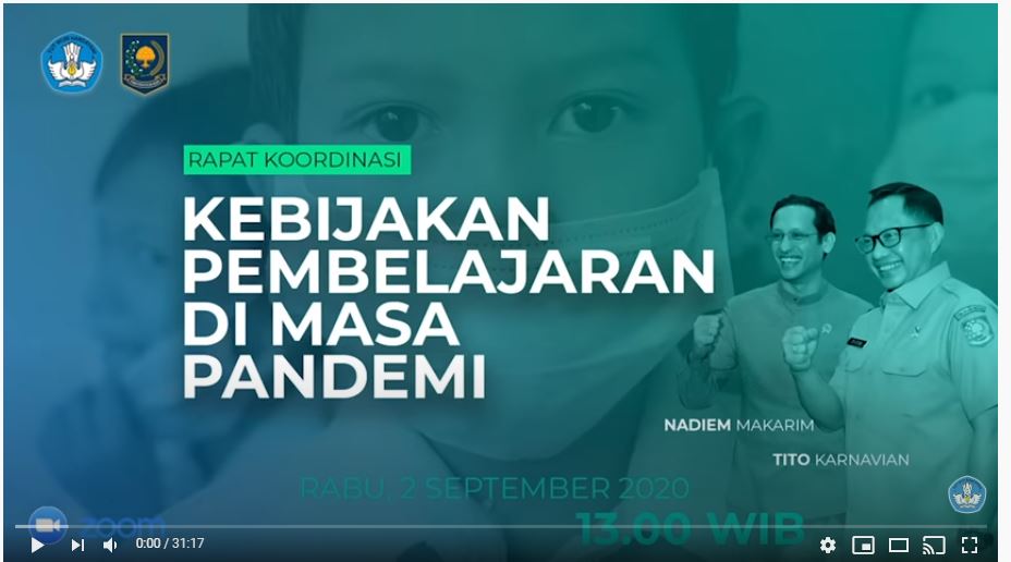Pemerintah telah mengeluarkan berbagai kebijakan dan inisiatif untuk menghadapi kendala pembelajaran di masa pandemi Covid-19, seperti Revisi Surat Keputusan Bersama (SKB) Empat Menteri yang telah diterbitkan tanggal 7 Agustus 2020, untuk menyesuaikan kebijakan pembelajaran di era pandemi saat ini.