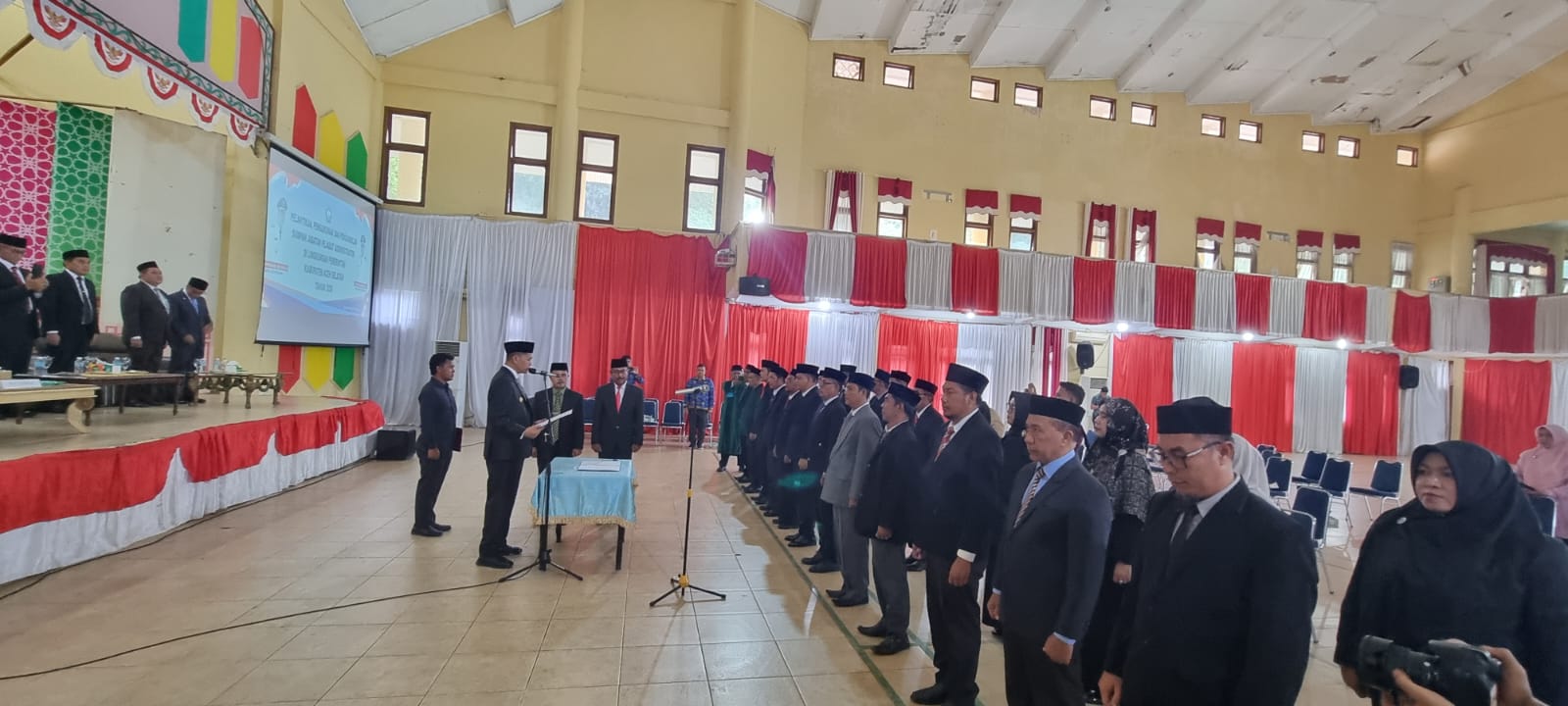 Prosesi pelantikan dan pengambilan sumpah jabatan yang dilakukan langsung Bupati Aceh Selatan H. Mirwan berlangsung di Gedung Rumoh Agam, Tapaktuan, Senin (27/4/2026).