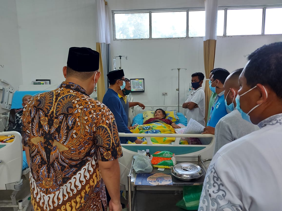 TheTapaktuanPost | Tapaktuan. Bupati Aceh Selatan, Tgk. Amran didampingi Plt. Direktur BLUD RSYA dr. Syah Mahdi Sp.PD menyempatkan waktu membesuk salah seorang warga Labuhanhaji inisial E (35) sedang menjalani perawatan diruangan ICU RSUDYA Tapaktuan.